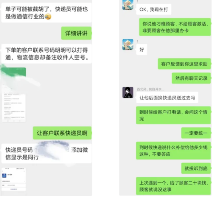 快递员截胡我们的订单,私自给顾客开他自己的卡,后果很严重,如果遇到,请举报投诉,绝不妥协。